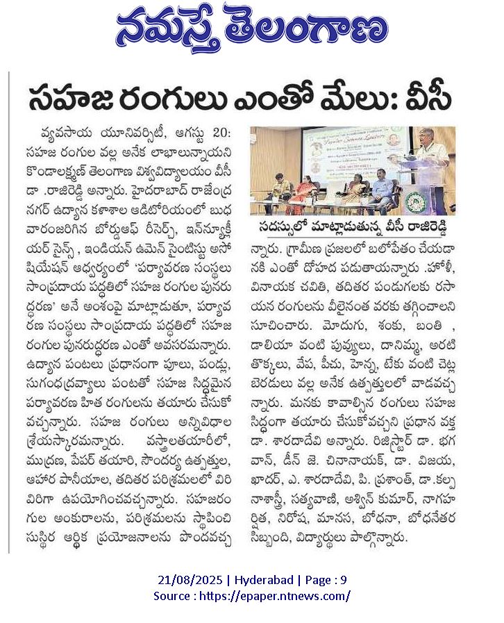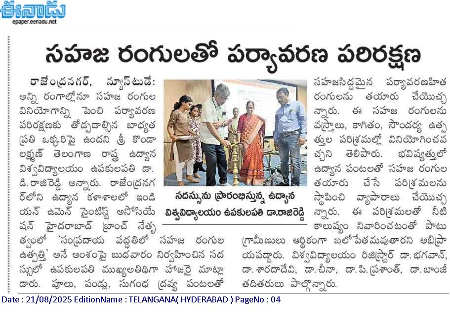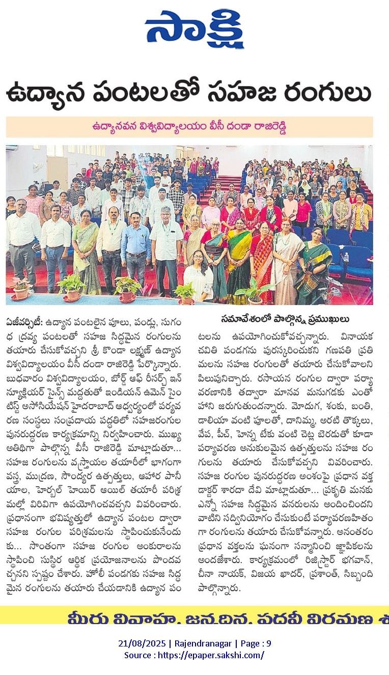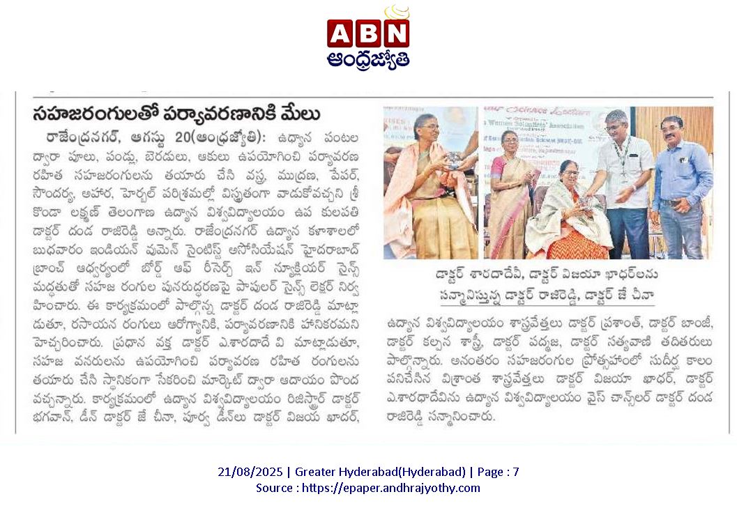 SKLTGHU- Popular Science lecture by Indian Women Scientist’s association at College of horticulture, Rajendranagar On 20th August 2025